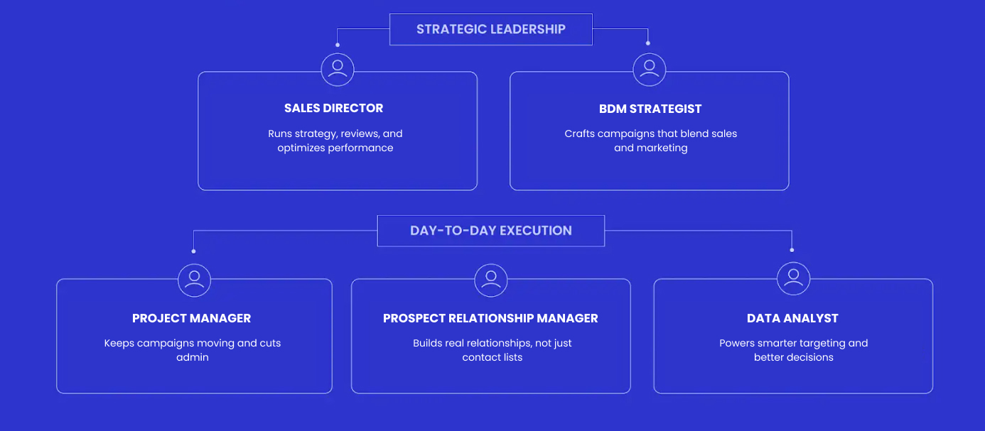 Managing multiple prospects needs a structured, multi-touch approach — most BDMs don’t have the skills, time, or desire to do it. We handle it behind the scenes so they can focus on selling.